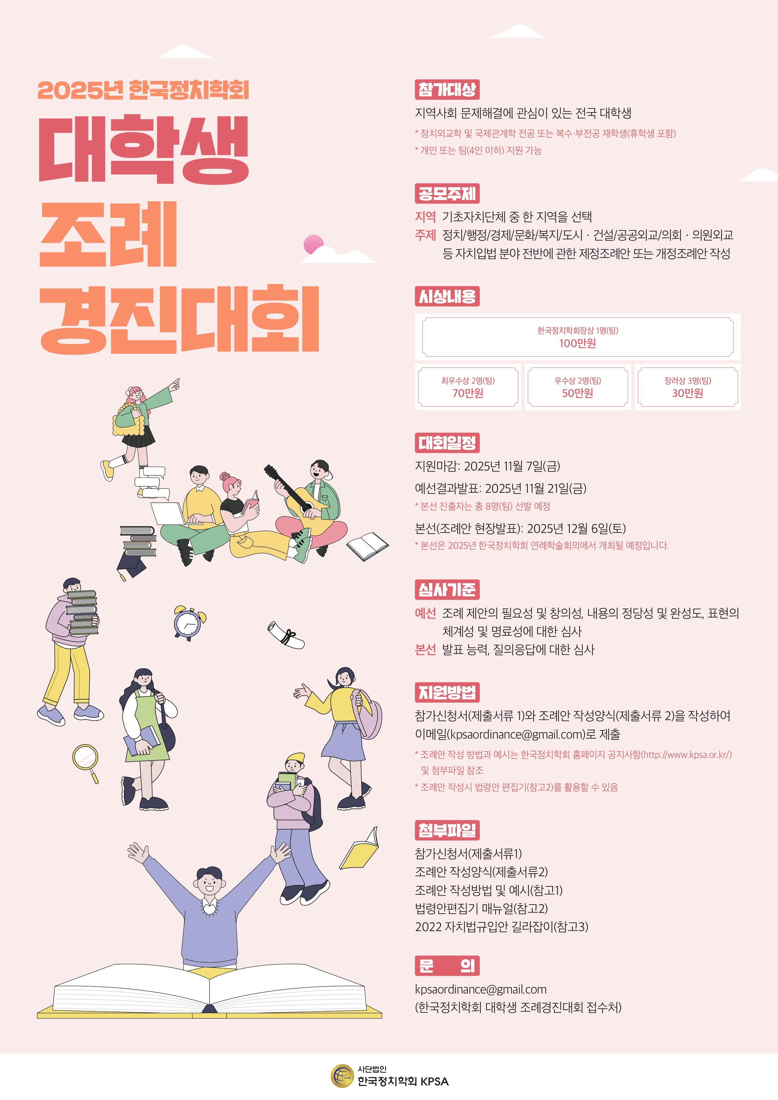 정치외교학과 24학번 안지연 학생, 사회과학계열 25학번 김성주 학생이 최근 서울대학교에서 열린 ‘2025 한국정치학회 대학생 조례 경진대회’에서 최우수상을 수상했습니다. 안지연 학생과 김성주 학생은 ‘정읍시 식품 사막화 해소 및 지역 상생 지원 조례안'을 주제로 식품사막 지역 주민이 겪는 물리적·경제적·정보적 격차를 줄이고, 취약계층을 안정적으로 지원하기 위한 제도적 기반을 마련 방안을 제안했습니다.